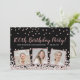 Design de convite de aniversário personalizado elegante com ouro rosa e confete prateado sobre fundo preto, tipografia moderna com as palavras "100ª Festa de aniversário" (em ouro rosa), seu nome e data de nascimento (em prata) e três de suas fotos favoritas emolduradas em folha metálica de ouro rosa. Personalize-o com os detalhes do seu partido no verso do convite.