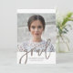 Celebre seu graduado com este elegante cartão de anúncio de formatura com foto, apresentando um layout limpo com tons suaves e uma sobreposição de texto refinada.