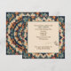 Um vibrante padrão de colcha geométrica irradia do centro, criando um intricado desenho de mandala em várias cores, incluindo tons de verde-teal, marrom-ferrugem e bege para uma festa de 50 anos.