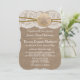 A coleção de casamentos de areia rústica de praia é um design impressionante que apresenta um adorável fundo de efeito de burlap com romântico com efeito de renda branca vintage, terminada com um incrível dólar e fio de areia. Esses convites podem ser personalizados para sua ocasião especial e farão o anúncio perfeito para qualquer casamento na praia, chá de panela, festa de noivado, festa de aniversário e muito, muito mais. *Por favor, note que Zazzle só vende convites impressos para que estes convites não tenham nenhum material real de burlap, renda, dólar ou fio.