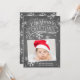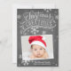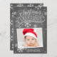 Este cartão de feriado apresenta trabalho de arte de caligrafia e gravações à mão sobre um fundo de quadro de caligrafia com flocos de neve.