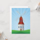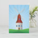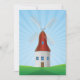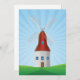 Um moinho de vento com telhado vermelho na paisagem de colinas verdes rolantes. Esta design parece realmente eficaz neste Convite