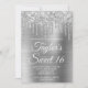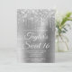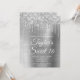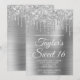 Crie seu próprio convite para comemoração de na moda 16 anos para sua filha. A cintilação cintilante prateada decorativa goteja gráficos de uma borda superior. A arte digital em segundo plano apresenta uma folha de metal escovada ao estilo da cinza brilhante. Personalize a cor do texto branco do convite ou os estilos de fonte. O texto "Sweet 16" também é personalizável. Os faíscas, brilho e folha de luxo serão criados por elementos artísticos que impressão gostam de uma foto.