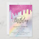 Convite Colírio Rosa Coloca Arco-Íris Holográfico Aniversá