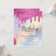 Este convite de aniversário moderno e feminino é perfeito para a menina. Ele apresenta pingos de bling brilhando brilhante magenta magenta, cor-de-rosa magenta, com impressão falsa em cima de um fundo holográfico e iridescente do arco-íris. É elegante, giro, único e bonito; o design perfeito para impressionar seus convidados. ***NOTA DE DESIGN IMPORTANTE: para qualquer solicitação de design personalizada, como solicitações de correspondência de produtos, alterações de cor, mudanças de posicionamento ou qualquer outra solicitação de alteração, envie uma mensagem ao designer. Você pode até enviar a ela um pedido de uma design completamente personalizada e nova.