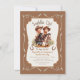 Colar para Cima, convite de aniversário de aquarela. Possui 2 gêmeos bonitos ou irmãos cowboy em um pônei ou cavalo com ferradura. Excelente para um país ocidental, mexicano, sudoeste, rancho, primeiro aniversario ou qualquer idade. Detalhes da corda e padrão de ocultação de vaca no dorso, em cores acastanhadas. Todos os textos podem ser alterados. Para fazer mais mudanças, vá para Personalizar este modelo. Na parte inferior você verá "Quer personalizar este design ainda mais? Clique em EDIT usando a ferramenta Design. A partir daí você pode mudar algumas fontes e algumas cores, mover coisas ou excluir o que você precisa. Um pequeno conteúdo de geração de meia-jornada combinado com elementos desenhados à mão.