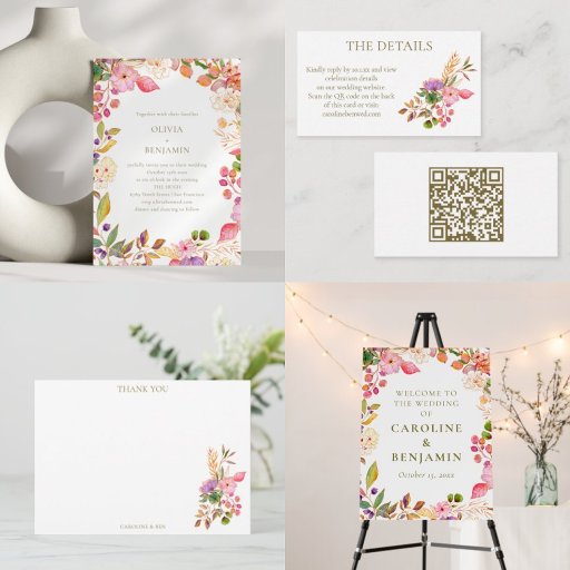 Convite Colorful Boho Watercolor Floral Elegant Wedding
