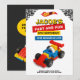 Bring excitement to your celebration with this bold and playful design! Featuring a bright brick-style race car and checkered flag details, it’s perfect for little builders and racing fans who love fun, creativity, and speed.