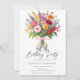 Convite Colorful Garden Flowers Bouquet Pink Bow Birthday
