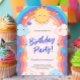 Convite Colorful Rainbow & Clouds Kids 1st Birthday Party