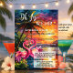 A fun and colorful wedding reception only, elopement, post or after wedding invitation. This invitation features a tropical sunset scene with two flamingos. On the back is your favorite wedding photo as well as a QR code template.