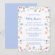 This elegant floral baby shower invitation features a soft watercolor wildflower frame and a calming light blue backing, creating a fresh and timeless design perfect for celebrating a baby boy. The hand-painted botanical flowers add a gentle, bohemian garden feel while keeping the layout clean and easy to read.