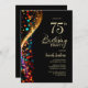 Convide seus amigos e entes queridos para seu aniversário de 75 anos com este convite de aniversário colorido de bokeh. A área de texto personalizável neste modelo de convite permite que você inclua facilmente todos os detalhes necessários para sua celebração especial de aniversário, incluindo as informações de data, hora, local e RSVP. Uma variedade de tipos de papel e estilos de canto estão disponíveis para seus convites exclusivos, juntamente com a opção de download se você preferir um formato digital.