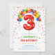 Convite Colorida Bright Confetti Balões aniversário de 3 a