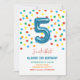 Confetti Colorido Cinco Balões 5 de Aniversário Convite