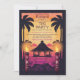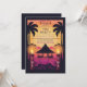 Este convite de festa Tiki transporta você para um oásis praiano, banhado pelo brilho suave de um pôr do sol vermelho e roxo. Uma pitoresca cabana tiki aninha-se entre palmeiras altas e farfalhantes. A praia arenosa imaculada, que se estende ao longe, promete uma celebração animada. As cores mescladas do céu do crepúsculo evocam uma sensação de tranquilidade tropical, preparando o cenário para uma vibrante festa Tiki.