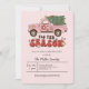 É a época de se divertir! Este convite de festa de Natal retrô apresenta uma picape rosa em aquarela com uma árvore de Natal e divertidas flores e estrelas retrô dos anos 70. O verso tem um padrão colorido de ondas retrô em cores natalinas suaves. É a maneira perfeita de convidar sua família e amigos para uma festa de Natal divertida.