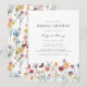 Convite Colorido para Chá de Noiva. Junte-se a nós na celebração do amor com flores silvestres pintadas à mão em tons de vermelho, rosa, dourado e roxo com uma linda libélula azul e borboleta-monarca! Essas belas flores certamente trarão alegria e prazer ao seu evento especial!