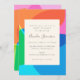 Este design alegre e contemporâneo apresenta formas de abstrato em tons brilhantes de arco-íris sobrepostas ousadas, moldando seus detalhes de eventos com charme lúdico. Uma escolha perfeita para um convite para o chá de fraldas, traz uma energia moderna e uma paleta cheia de alegria ideal para honrar os futuros pais. O tipo de produto é um cartão de convite personalizável concebido para encontros festivos de bebês.