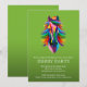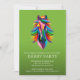 Uma cabeça de cavalo de corrida colorida brilhante e um homem de fundo verde estão representados nestes convites de festas derby. CORRESPONDENTE a itens na nossa coleção.