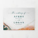 Abstrato Eteral Moderno - Chamas De Casamento Com Três Dobradiças De Altura Escura E Cobre. Este convite de casamento moderno inclui todas as opções que você precisa em um design. Cartão RSVP, Informações, Foto do Casal, Convite de casamento, tudo em um! É belistificado pintado à mão com cores ricas que são perfeitas para o outono ou o inverno. Mostrada na Coloração da Paleta de Cores do Casamento do Teal Escuro de: Verde-Cheia-Escuro, Ferrugem-Cobre, Dourada-Posta, Grove de Amêndoa e bege-Bisque. Com detalhes falsos da folha de brilho metálica, e uma fonte de script de assinatura maravilhosa com caudas, a coleção de casamentos de cor aquática etérea certamente fará seu casamento memorável e bonito! Para ver mais, procure as coleções de casamento de 2021 da Chic Paperie para ver mais designs de tendências e cores de casamento para este ano.