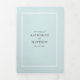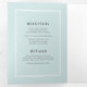 Esta adorável design de convite para casamento, apresenta um quadro simples, mas elegante em cada painel do convite. A cor de fundo é um azul macio e pálido emparelhado com a tipografia elegante das cinzas de carvão. O dentro do cartão apresenta o convite, os detalhes do casamento e um cartão rsvp que pode ser cortado e enviado como está. Observe que o cartão rsvp requer postagem padrão de primeira classe (não a taxa de cartão postal). Este design pode ser personalizado para QUALQUER cor de sua escolha editando o fundo do dentro (primeiro painel, painel do meio e último painel), o fundo externo e o fundo externo do cobrir (soa complicado, mas é muito fácil!) Como está, todos os quadros, cores de fundo e texto são brancos, azuis-claros e cinzas de carvão.