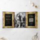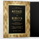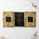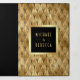 Convite Com Dobra Tripla Arte Geométrica Deco Código QR Dourado Preto Casam