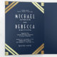 Convite Com Dobra Tripla Arte Geométrica Deco Marinho Azul Dourado Código Q