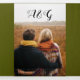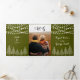 Árvores e lanternas na madre verde-oliva rustica, inverno, três vezes a invasão de casamentos. Apresenta árvores brancas e luzes de cordas na madeira do cobrir e da aba externa. A dentro inclui o texto em quadros com padrão de floco de neve ao seu redor, enquanto a parte externa segura a foto e as iniciais do casal.