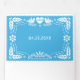 O papel azul claro picado ama pássaros três vezes o convite de fiesta de casamento. Esta natureza inspirou o convite de casamento floral do estilo folk mexicano inclui dois pássaros amorosos e um coração amoroso com a palavra amor, assim como flores, folhas e pequenos pontos em fundo azul.