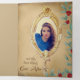 Este convite de festas encantador apresenta o tema Beleza e conto de fadas da Besta com um estilo vintage. O fundo é uma rústica design de papel pergaminho para se assemelhar a um livro antigo. O cobrir apresenta a frase Seja nosso convidado, impressa em um padrão de brilho dourado. Uma imagem de um castelo de conto de fadas com rosa de ouro é impressa no centro do verso. O dentro apresenta videiras e rosas vermelhas. Um rosa mágico é impresso por baixo da frase Uma vez em uma frase do tempo. A terceira página contém um espelho de ouro com um dentro de foto de exemplo. Você pode personalizar o convite para incluir sua própria foto ou imagem personalizada.