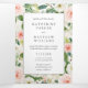 Este maravilhoso convite para casamento, tudo em um, apresenta um elegante quadro floral de cor rosa e rosa branca e elegante tipografia. Não é necessário incluir envelopes de resposta, pois seus hóspedes podem simplesmente cortar a resposta anexada e enviá-la por e-mail como um cartão-postal (OBSERVE - esse tamanho requer postagem de primeira classe regular). Uma abordagem verdadeiramente elegante, mas moderna, aos convites para casamento!
