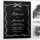 Convite Com Dobra Tripla Black Hand Drawn White Bow QR Code Photo Wedding