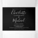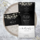 Tudo em um convite de casamento preto e branco triplo com luzes de cordas bonito e tipografia elegante. O convite inclui os detalhes das informações de convidado de celebração e um cartão RSVP destacável. Projetado por Thisnotme©