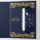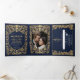 Convite Com Dobra Tripla Blue Sword Shield Medieval Fantasy Foto de Casamen