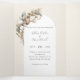 Experimente a beleza da sua próxima celebração com este Convite de Casamento Triplo. O dentro desdobra-se para revelar um arco branco sereno de vassoura adornado com algodão e eucalipto de aquarela rústica, colocado sobre um fundo bege macio, criando um ambiente de elegância natural. A aba frontal apresenta uma coroa aquática cativante e não simétrica, personalizada com os nomes da noiva e do noivo, definindo o palco para o dia especial.