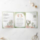 Convite Com Dobra Tripla Boho Floral Rosa Pampas Cactus Código QR Casamento