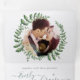 Três vezes a Elegante Cottagecore Farmhouse Wreath Outdoor All In One Elegante Boho Green Leaf Olive Ash Invitation com um corte e envio de RSVP de cartão-postal. Temas de casamento ao ar livre do Boho Tententeado Garden. Corações e linhas são opcionais e podem ser excluídos ou movidos para sua escolha de locais. Você pode copiá-los e colá-los se precisar de elementos adicionais.