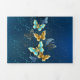 Composição de borboletas voadoras, joias, douradas e escuras em um fundo texturizado de joias. Borboleta dourada.