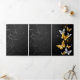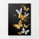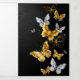 Borboletas Douradas, joias e brancas sobre fundo preto. Borboleta ouro.