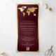 Convite Com Dobra Tripla Burgundy Gold World Map QR Code Photo Wedding