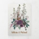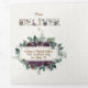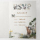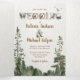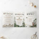 Convites dobráveis tri-fold de casamento florestal aquarela que incluem cartões de resposta RSVP, detalhes e informações e uma foto do casal. Caracteriza cervo, floresta de pinheiros, buquês de flores e fontes decoradas. Ótimo para um casamento ao ar livre, na floresta, na montanha!