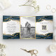 Convite Com Dobra Tripla Casamento com Código QR de Abstrato Dourado marinh