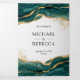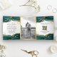 Convite Com Dobra Tripla Casamento com Código QR de Abstrato Dourado Teal