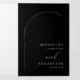 Este é um Convite de Casamento Trifold, tudo em um, que apresenta uma elegante caligrafia e uma simples fonte de tipografia, com forma de arco em um fundo preto e fotografia e Código QR. A simplicidade desta design adiciona um toque de elegância ao seu casamento. Funciona bem com muitos temas de casamento e definitivamente um excelente extra para o seu casamento. Basta personalizar os nomes e a redação em alguns passos fáceis nos campos de texto e personalizar o cartão de convite triplo multifunções com a sua fotografia do casal feliz e substituir os Códigos QR pelo seu para dar ao seu convite um toque pessoal agradável. Este convite vai poupar dinheiro para enviar tudo de uma vez. Tem um cartão postal RSVP que seu convidado pode simplesmente enviá-lo de volta. Simplesmente dobre cada carta de convite na forma traçada — sele e envie aos seus convidados. Nenhum envelope é necessário para envio — apenas postagem. Por favor, note: A forma de arco de "Você é convidado para o casamento de", "por favor, entregue a", "por favor gentilmente", E a elegante escrita de tipografia caligráfica de "e", "Fundo de lua de mel", "Recepção a seguir", "gentilmente", "entregar a", juntamente com as linhas e outros elementos gráficos de trabalho de arte e formulações não podem ser editados, movidos e/ou eliminados. Eles estão consertados. Se precisar alterar a cor, você pode personalizar o convite para o cartão. Você pode personalizar e personalizar o convite para ajustado das suas necessidades de evento de casamento e clicar em personalizar o convite. EXEMPLO: Se você quiser obter um exemplo deste convite, poderá solicitar apenas UM cartão (alterar a quantidade para UM) e selecionar suas preferências para ver como ele é exibido e se sente. Pode consultar o resto dos nossos produtos no Zazzle em https://www.zazzle.com/store/1creativemastermind/products Se quiser consultar o nosso compro sobre o Etsy, pode consultar 1CreativeMastermind.etsy.com