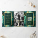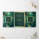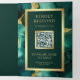 Convite Com Dobra Tripla Casamento com código QR de tinta fluida Dourada Em