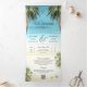 Encontrem seus convidados com este elegante tudo em um convite de casamento com um belo fundo de praia e palmeiras com código QR para RSVP online. Basta adicionar os detalhes do seu evento neste modelo fácil de usar e adorar este cartão com as suas fotografias favoritas para o tornar um convite único.