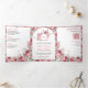 Convite Com Dobra Tripla Casamento de Borboleta de Rosas vermelhas Rosa-nam