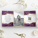 Convite Com Dobra Tripla Casamento de Código QR de Abstrato Dourado Roxo