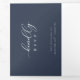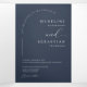 Este é um Convite de Casamento Triplo-Dobro, tudo em um, que apresenta uma elegante caligrafia e uma simples fonte de tipografia com um título de forma de arco sobre um fundo azul de marinho e uma fotografia e um Código QR. A simplicidade desta design adiciona um toque de elegância ao seu casamento. Funciona bem com muitos temas de casamento e definitivamente um excelente extra para o seu casamento. Basta personalizar os nomes e a redação em alguns passos fáceis nos campos de texto e personalizar o cartão de convite triplo multifunções com a sua fotografia do casal feliz e substituir os Códigos QR pelo seu para dar ao seu convite um toque pessoal agradável. Este convite vai poupar dinheiro para enviar tudo de uma vez. Tem um cartão postal RSVP que seu convidado pode simplesmente enviá-lo de volta. Simplesmente dobre cada carta de convite na forma traçada — sele e envie aos seus convidados. Nenhum envelope é necessário para envio — apenas postagem. Por favor, note: A forma de arco de "Você é convidado para o casamento de", "por favor, entregue a", "por favor gentilmente", E a elegante escrita de tipografia caligráfica de "e", "Fundo de lua de mel", "Recepção a seguir", "gentilmente", "entregar a", juntamente com as linhas e outros elementos gráficos de trabalho de arte e formulações não podem ser editados, movidos e/ou eliminados. Eles estão consertados. Se precisar alterar a cor, você pode personalizar o convite para o cartão. Você pode personalizar e personalizar o convite para ajustado das suas necessidades de evento de casamento e clicar em personalizar o convite. EXEMPLO: Se você quiser obter um exemplo deste convite, poderá solicitar apenas UM cartão (alterar a quantidade para UM) e selecionar suas preferências para ver como ele é exibido e se sente. Pode consultar o resto dos nossos produtos no Zazzle em https://www.zazzle.com/store/1creativemastermind/products Se quiser consultar o nosso compro sobre o Etsy, pode consultar 1CreativeMastermind.etsy.com